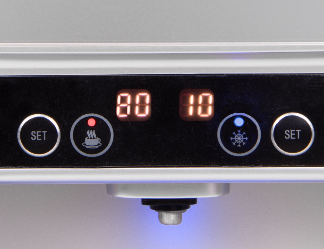 Digitális hőfokkijelzéssel ellátott és érintőgombokkal vezérelhető. Higiénikus kezelés és modern megjelenés.